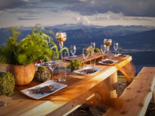 当地的四星级酒店Kollers Hotel还为情侣准备了别致浪漫的“湖中双人晚餐”:月光倒映在米尔施泰特湖的湖水中,繁星点点的夜空好似一个大帐篷,笼罩着四周美得令人窒息的山景;湖水轻轻地拍打着停靠在湖中央的木筏,精心布置的餐桌就在这湖中心的木筏上。漫天星斗、湖影流光、寂静群山将成为浪漫双人晚餐的完美背景。